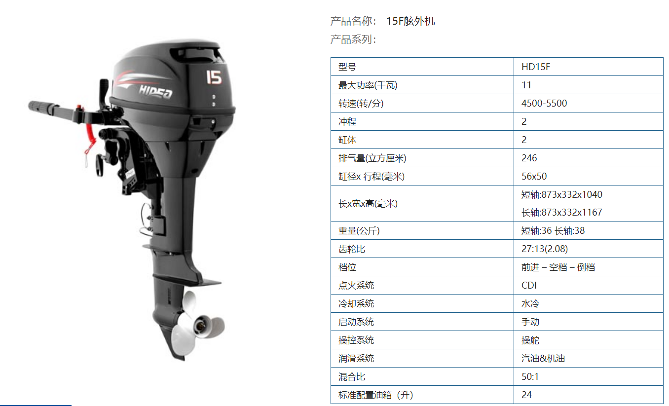 可選機型:· HD15FHS – 手動,操舵,短軸