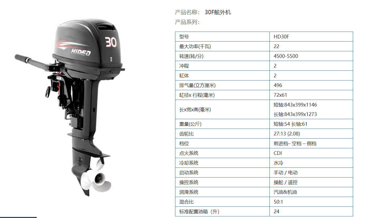 · HD30FHES - 電啟動(dòng),操舵,短軸